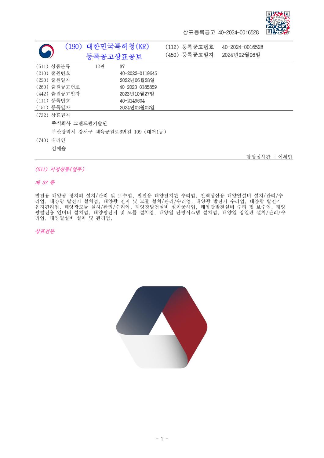 제 37 류 - 발전용 태양광 장치의 설치/관리 및 보수업 외 14건 설치 및 관리업 -