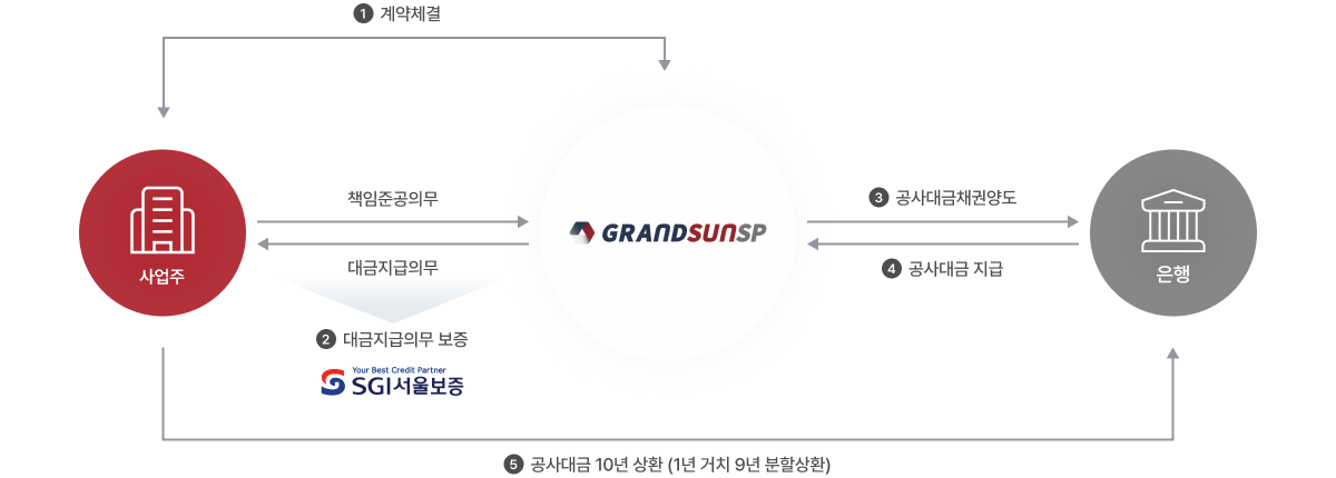 사업주는 금융기관에 공사대금을 분할납부하는 사업입니다.