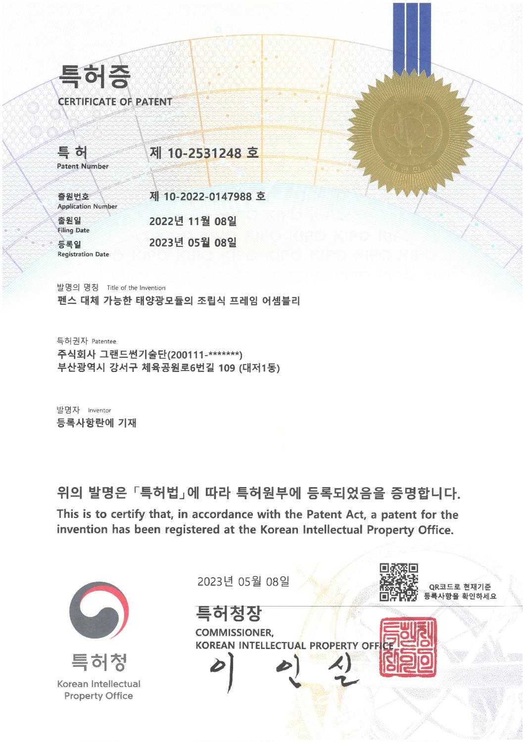 펜스 대체 가능한 태양광모듈의 조립식 프레임 어셈블리 -