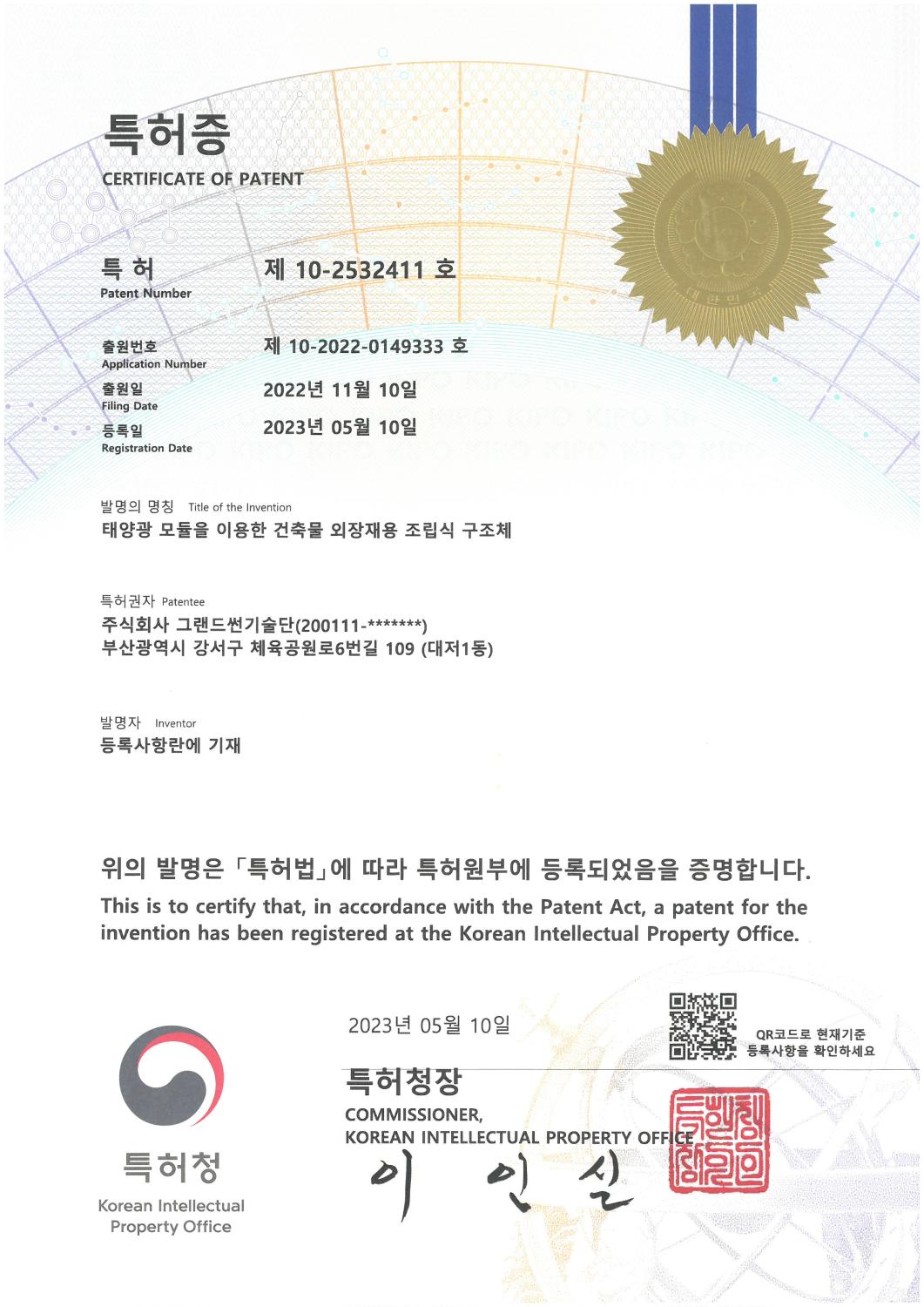 태양광 모듈을 이용한 건축물 외장재용 조립식 구조체